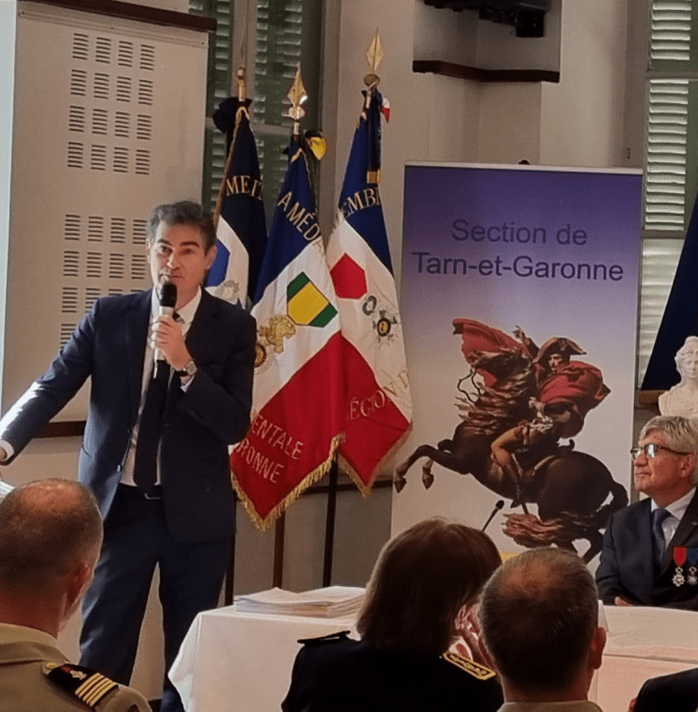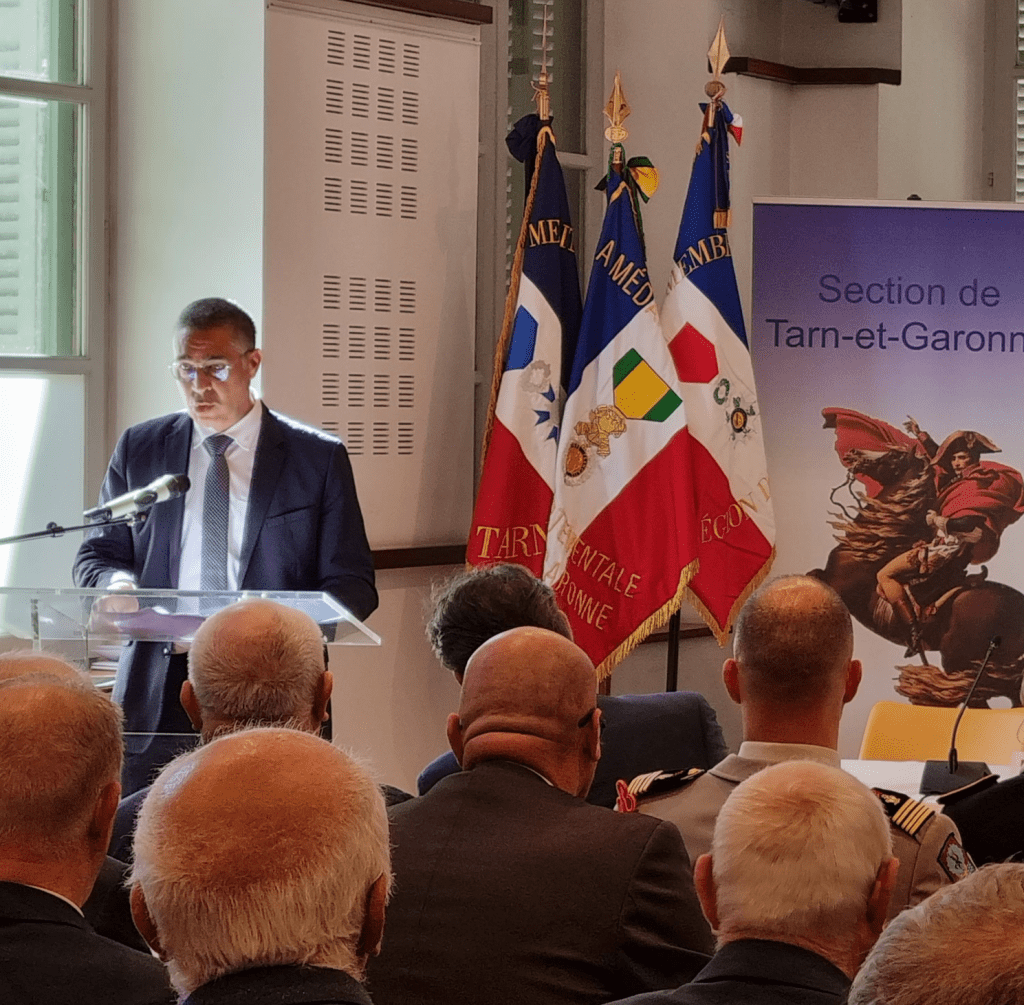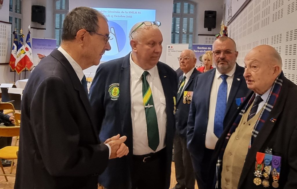 A l’issue de l’Assemblée Générale statutaire, le Président de la SMLH82 a accueilli les autorités civiles et militaires, notamment Madame Chantal Mauchet, Préfète de Tarn et Garonne, les sénateurs  de Tarn et Garonne Pierre-Antoine Levi et François Bonhomme, Monsieur Patrice Garrigues conseiller régional représentant la présidente du conseil régional d’Occitanie, Madame Carole Delga, Monsieur José Gonzalez, vice-président du conseil départemental représentant Monsieur Michel Weill, président du conseil départemental, le colonel Fabrice Duda, délégué militaire départemental et le Colonel Jean-Marie Levey , chef de corps du 17ème RGP.
